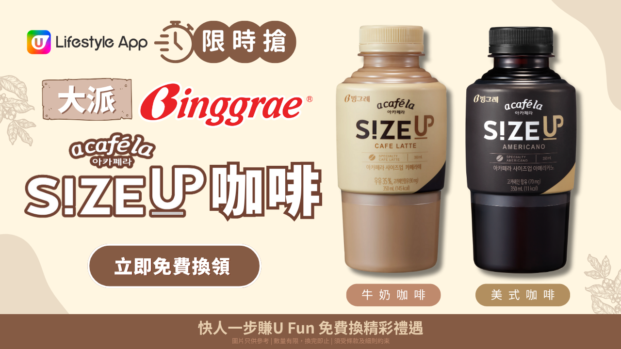 【限時搶】免費大派Binggrae SIZE UP咖啡!每日醒神之選