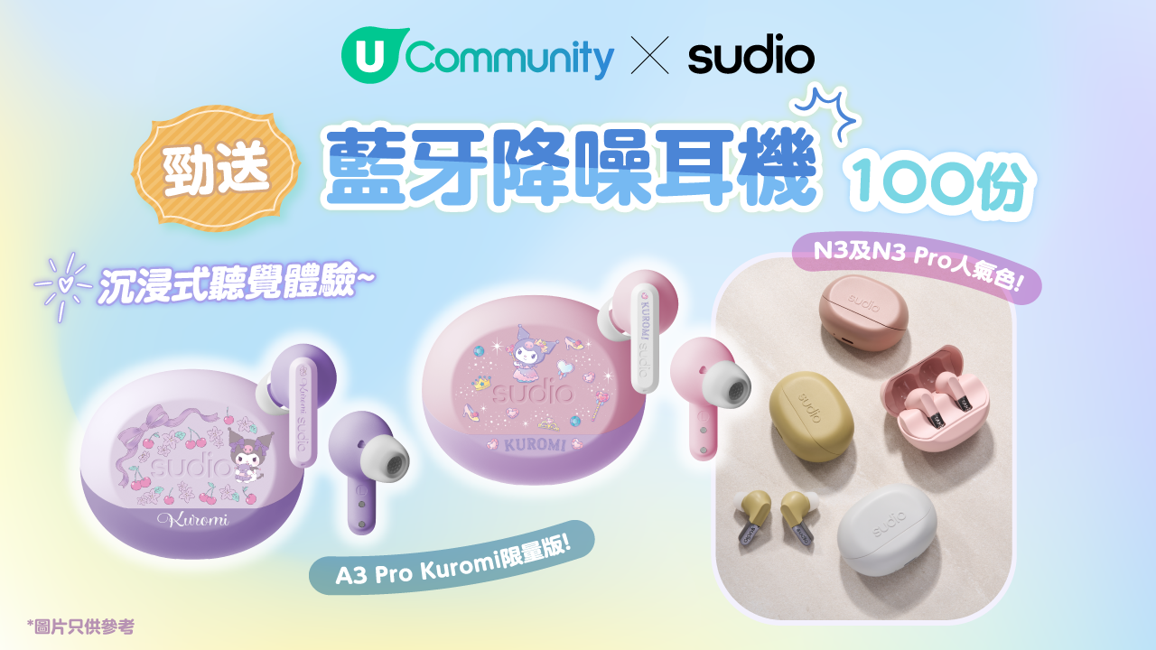 U Community x Sudio 勁送100副藍牙降噪耳機!沉浸式聽覺體驗~
