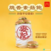 為配合太平清醮節日傳統,麥當勞長洲分店於今晚11點起推出素食選擇—期間限定脆香素菇飽。有興趣朋友記得入長洲試試喇!脆香素菇飽供應期為5月2日晚上11時至5月5日下午2點59分,想食就要把握時間喇!
