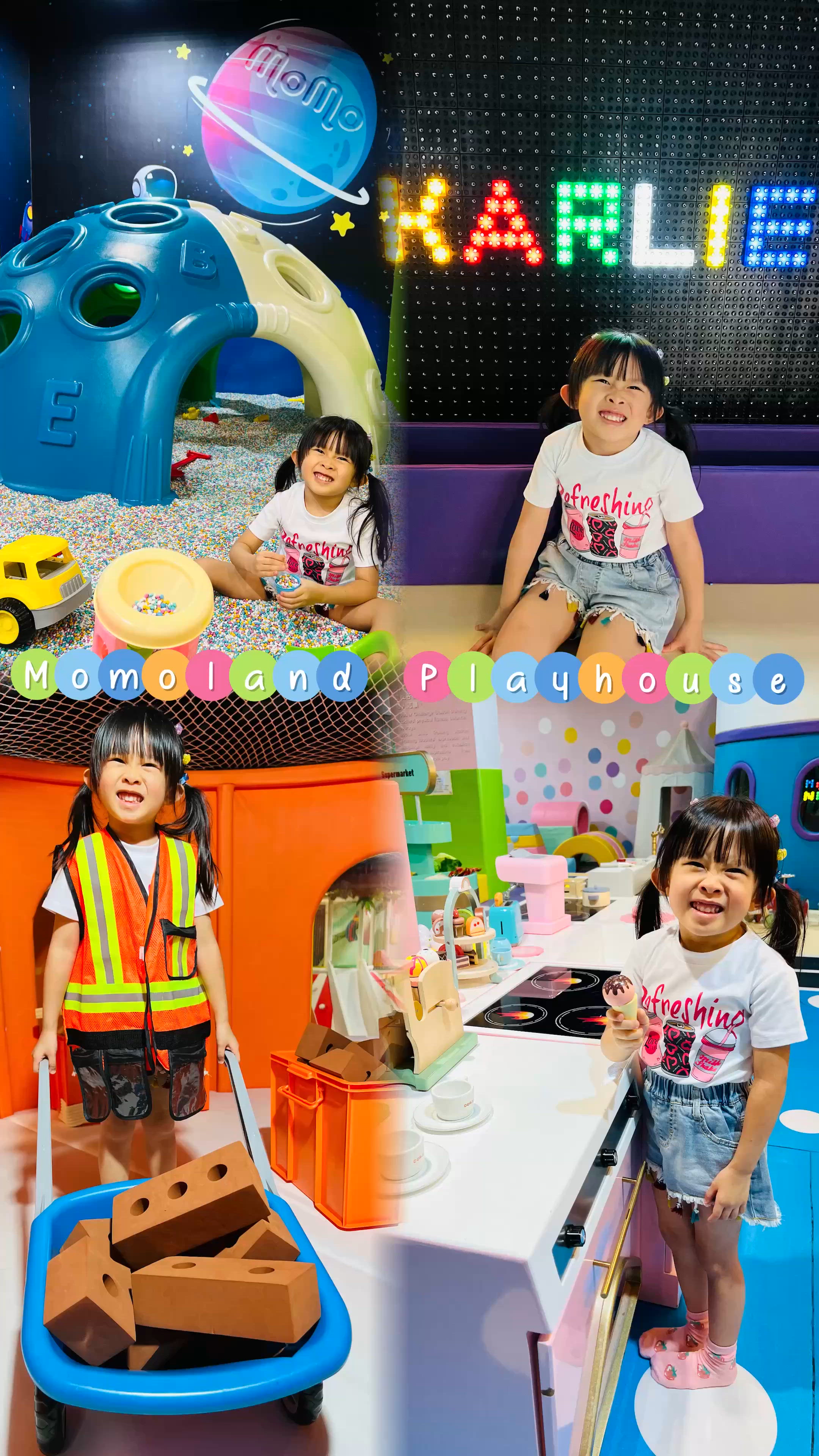MOMOLAND兒童室內遊樂場位於將軍澳南豐廣場,佔地超過1萬呎分為春夏秋冬4個區域,以及一個太空主題。最近新增了冬天主題,小朋友可以近距離在大片雪地玩雪,場內更有一系列的遊樂設施,包括滑梯、職業模仿體驗和互動投影區,現時大人連小朋友人均$70可以進場任玩1小時,放假一定要帶小朋友來玩啦!