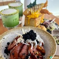 倆口小吃近日與The Matcha Tokyo合作聯乘,兩款大賣產品:抹茶忌廉芝士壓餅與傳統刈包由即日起於The Matcha Tokyo四間分店發售。抹茶壓餅($45)選用The Matcha Tokyo更優質的有機抹茶粉,與元朗店舖賣的為另一風味。而傳統刈包($58)則改用慢煮方法處理滷肉,配上柚子醬、花生等配料味道豐富。