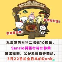 為慶祝西村裕二出道10周年,Sanrio即將與西村裕二聯名推出22款服飾、公仔及雜貨商品, 將於3月22日於全日本的Donki 及APITA UNY店開售!商品內包含的角色有: Kuromi, My Melody, Hello Kitty, 布丁狗及玉桂狗。五個角色都變得醜萌,超級可愛!即睇詳情➡️ 1️⃣刺繡短袖T恤  售價:見圖6 2️⃣短袖T恤(附口袋)  售價:見圖6 3️⃣背面印花短袖T恤(共2款) 售價:見圖7 4️⃣印花短袖T恤 售價:見圖8 5️⃣印花短褲 售價:見圖8 6️⃣及膝短褲(2款) 售價:見圖9 7️⃣短袖運動套裝 售價:見圖10 8️⃣短袖絨布套裝(上衣+下裝) 售價:見圖10 9️⃣長袖運動套裝(上衣+下裝) 售價:見圖11 🔟頭帶 售價:見圖12 1️⃣1️⃣髮圈 售價:見圖12 1️⃣2️⃣公仔髮夾  售價:見圖13 1️⃣3️⃣公仔單肩袋 售價:見圖13 1️⃣4️⃣手提袋 售價:見圖14 1️⃣5️⃣索繩細袋 售價:見圖14 1️⃣6️⃣造型收納袋 售價:見圖15 1️⃣7️⃣亞加力立牌 售價:見圖16 1️⃣8️⃣亞加力鎖匙圈 售價:見圖16 1️⃣9️⃣亞加力鎖匙圈(附支架)  售價:見圖17 2️⃣0️⃣公仔吊飾 售價:見圖18 2️⃣1️⃣毛絨公仔掛飾 售價:見圖18 2️⃣2️⃣襪子(一Set四對) 售價:見圖19 !!價格及詳情以官方公告為準, 帖文內採用日圓匯率5.2換算!! 圖片來源:官網@PR Times「株式会社ブランチ・アウト」新聞稿 #攻略 #sanrio #kuromi #hellokitty #my melody #西村裕二 #外遇兔 #love rabbit #布丁狗 #玉桂狗 #日本sanrio #sanrio周邊 #donki #sanrio聯名