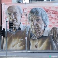 像我住的酒店附近,就有一幅很大的老人畫像👵👴~