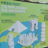 除了玩樂外,場內更設置五大巨型充氣世界奇觀,包括「英國巨石陣」、「智利復活節島摩艾石像」、「埃及吉薩金字塔」、「意大利比薩斜塔」及「法國凱旋門」。最巨型的裝置更高逾13米,晚上更會發出不同色彩,大家來到一定要打卡!而當中亦有小朋友最喜歡的「英國巨石陣」充氣彈床,小朋友可以在巨石陣盡情跳彈。