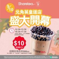 歇腳亭Sharetea新店位於深水埗大埔道,於7月3日推出開幕日限定$10珍珠奶茶優惠,一共有2個時段:第一節12:30–13:30,第二節16:30–17:30,深水埗街坊千萬不要錯過啦!