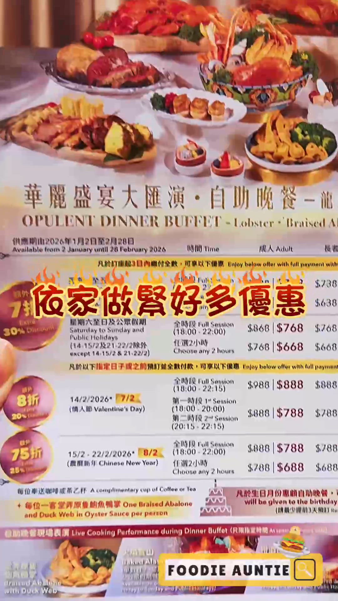 灣仔六國酒店LE MENU3月以「龍蝦、花膠、扣鮑魚」為核心,從溫潤滋補的堂弄原隻鮑魚鴨掌、鮑汁燴花膠,到香脆惹味的芝士焗蟹蓋與鹹蛋黃金蝦,每一道熱葷都展現出食材的尊貴質感;冰鎮海鮮區則由波士頓龍蝦與雪花蟹腳坐鎮,搭配現場鐵板燒,包括鴨肝、虎蝦、牛脷、雞軟骨和多春魚等,陣陣焦香!甜點部分更是不容錯過,從櫻花士多啤梨蛋糕到獲獎的朱古力蜜柑慕絲蛋糕,精緻程度堪稱藝術,Kkday現正做快閃優惠低至54折,更可以獨家升級無限暢飲汽水、凍果汁、啤酒、紅白酒及氣泡酒!
