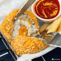 長洲除咗大魚蛋出名,呢間以蛋料理為主題嘅餐廳都好有人氣,皆因佢全部菜式都好獨特呀。必食呢款松露是蛋炒配煎薯餅,煎薯餅非常香脆,薯絲嘅存在感好強,幾有口感,薯餅本身已經有淡淡黑松露香,加埋松露炒蛋真係好濃郁。土製炸蛋即係炸豬柳包住雞蛋,切開後嘅蛋黃仍然流心,水準之作。甜品當然要食埋焦糖燉蛋,面層焦糖香脆,燉蛋香濃微甜,值得一試。 #我想去AIA嘉年華
