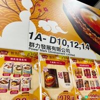 | $1鮑魚 | 安記海味 | 1D-C10 | 首日頭9位入場人士組隊玩「蟹」逅鮑魚遊戲,分成3組在30秒內擲鮑魚。最高分的組別即送500罐即食溏心鮑魚,其他組別亦可獲得150罐即食鮑魚。 |
