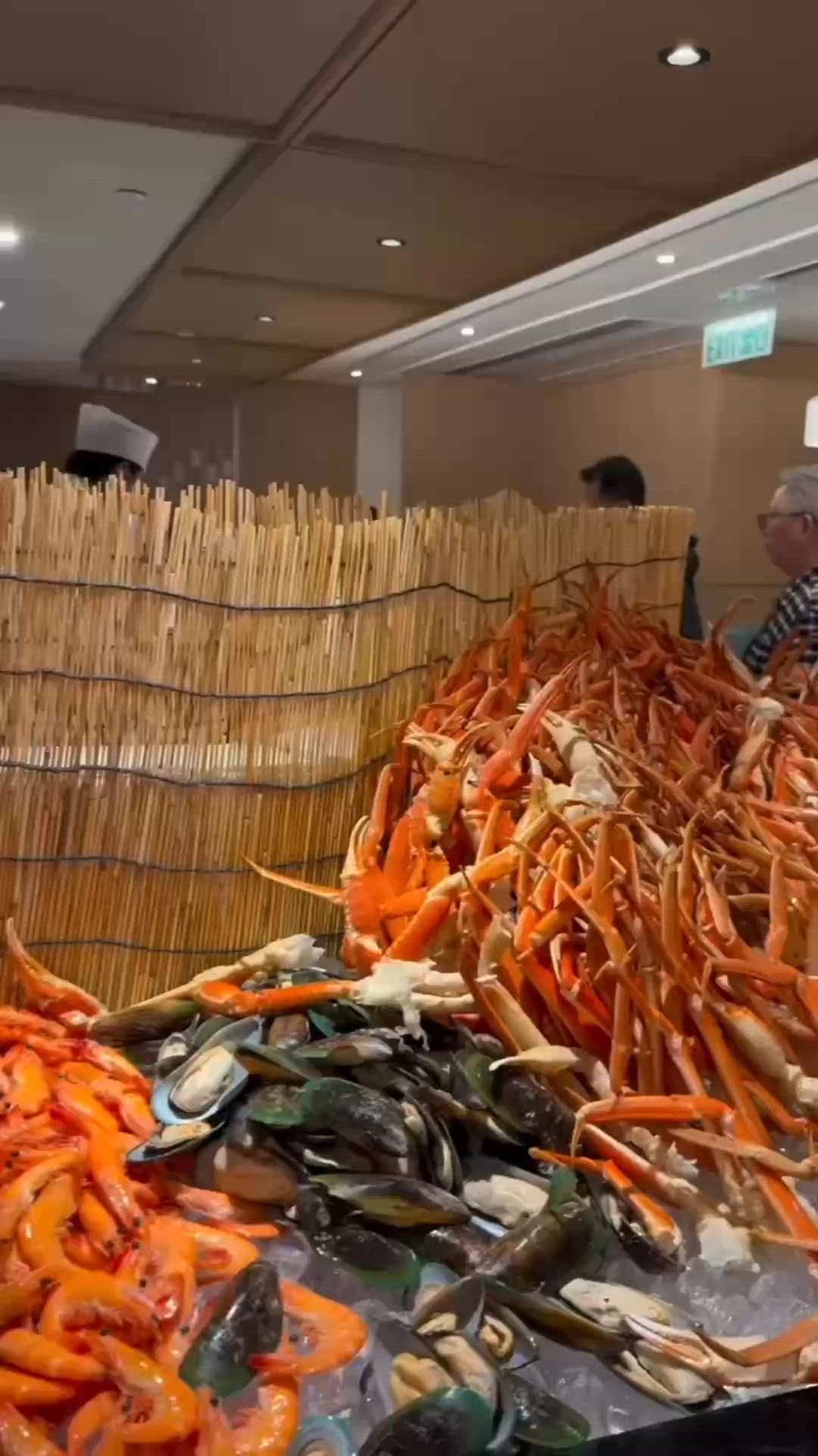 冰鎮海鮮、壽司及刺身:即開生蠔、鱈場蟹腳、波士頓龍蝦(平日限定)、紐西蘭青口、翡翠螺、三文魚、油甘魚、馬來西亞蔬果沙律、羅望子汁青木瓜沙律