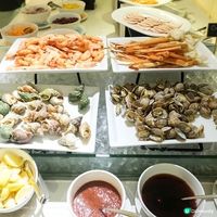 冰鎮海鮮及刺身:即開生蠔、鱈場蟹腳、鮮蜆、阿根廷天使紅蝦、北海道帶子、挪威三文魚、鯛魚、北寄貝