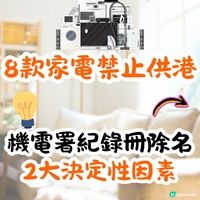 機電署:8款家電即日起禁止在港供應