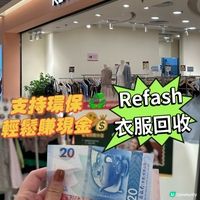 位於葵芳、旺角、九龍灣都有分店的REFASH,每月推出的回收舊衫兌換現金活動大受歡迎,只要帶齊最少10件、最多100件的衣物到店回收,店員就會根據衣服的設計、新舊程度等即時對應支付不同金額。而被拒收的舊衫亦可委托捐贈至救世軍,無需再帶回家!惟需注意REFASH每月只進行約2次的回收活動,實行預約制,詳情需留意品牌社交平台。