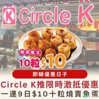 又有另一間便利店推出燒賣或魚蛋或優惠喇!Circle K限時推出Hot & In限時美食優惠,魚蛋或燒賣只需要$10就有10粒,平均$1/1粒就買到,而且優惠更是一連九日不分時後進行。喜愛食燒賣及魚蛋的粉絲不要錯過啦,即睇以下詳情啦!