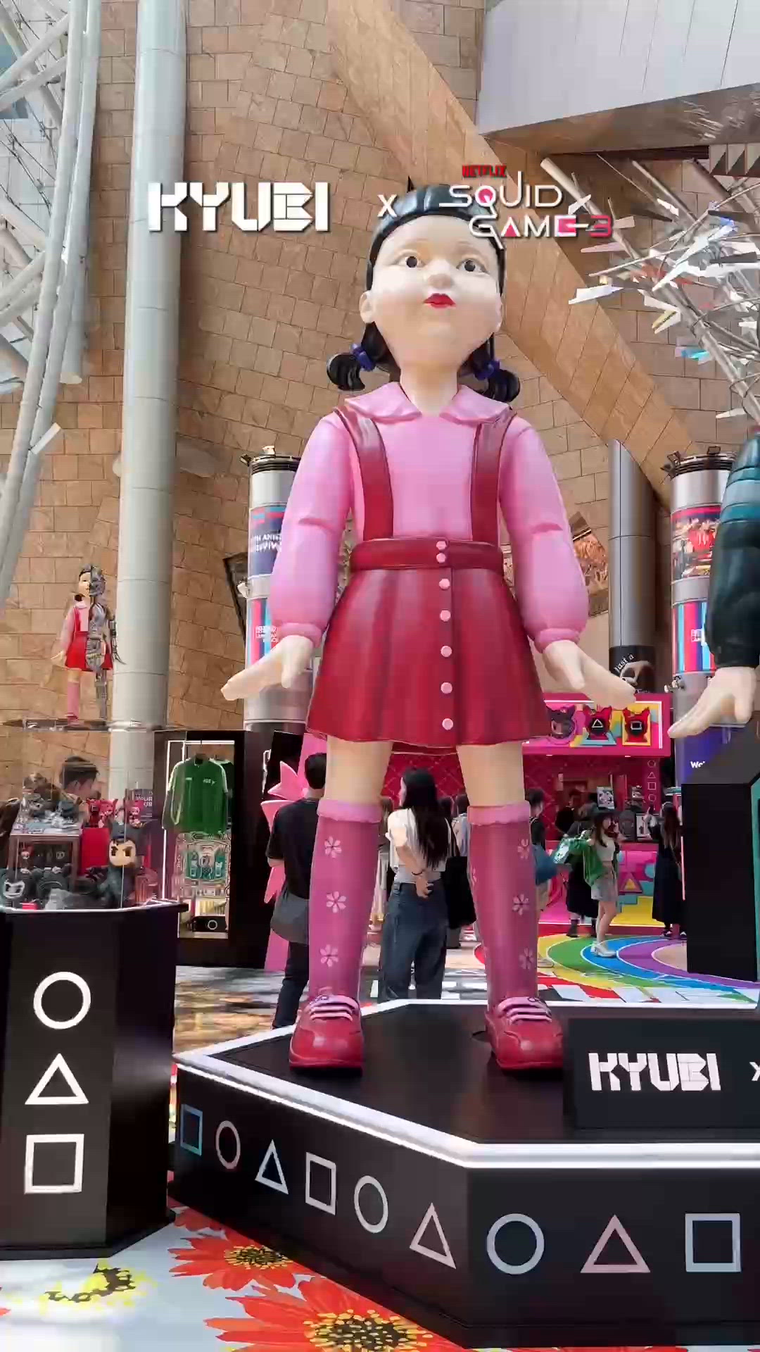 由1月10日至2月5日,NETFLIX《魷魚遊戲》攜手打造《KYUBI X SQUID GAME 2》主題展覽暨期間限定店,呈現極具規模的巨型打卡場景,包括重磅製作的 4 米高英熙娃娃 Young-Hee 、負責人 Front Man 的立體面具裝置、天花懸掛人人渴望擁有的豬仔錢罌,而 KYUBI 主理人阿 KYU 亦化身遊戲角色,與隱身於粉紅守衛隊伍中的 KYUBI 仔均極為搶眼!