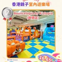 升級後的Bouncetopia設有全新12大障礙遊戲設施,由Kiztopia 8位人氣原創卡通角色主理。設施包括:3萬個波波的400呎加深版巨型波波池、與朋友對戰的互動競技場、考驗運動天賦的投籃機和飛斧隊、發揮創造力的加大版城堡木粒池和搖搖充電站等,旨在培養兒童8大成長智能(圖像、身體、邏輯、人際關係、音樂、自然、自我和文字),並建立社交技巧、自信心和自尊心。