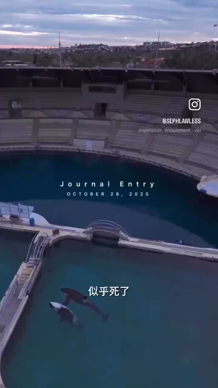 荒廢的海洋公園,孤單的母子虎鯨,因為法國通過了「禁止動物表演」的法令,蔚藍海岸上的 Marineland海洋公園 永遠關上了大門。 人潮散去、音樂停下,園區裡卻還留著兩隻虎鯨—母親 Wikie 和她的孩子 Keijo,以及 12 隻海豚。 最近,無人機拍下了令人心碎的一幕。原本在混濁的水中漂浮着的母子竟在發現無人機鏡頭後開始旋轉、躍起、拍打水面,彷彿日常的表演。 那不是為了取悅人類,而是他們唯一記得的「被看見的方式」。在長久的孤寂裡,他們或許以為,只要再次表演,就有人會回來。 如今的園區早已失去光彩,池水混濁、牆面覆滿青苔。雖仍有少數工作人員在照料牠們,但環境明顯惡劣,他們的健康與生命都令人擔憂。 加拿大、希臘、意大利等國都曾提出接收庇護這對母子虎鯨的申請, 卻一次又一次被法國政府拒絕。這不只是海洋公園荒廢的故事,而是生命被遺留的現實。 願法國政府能儘快出面,讓這些曾為人類帶來笑容與感動的生命,能有回到大海、重新呼吸自由。 影片拍攝 IG@sephlawless #Wikie#Keijo#Marineland#法國#虎鯨#FreeTheOrcas#SaveTheWhales#France