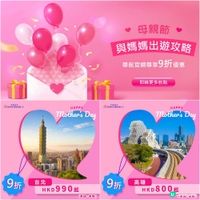 📣 中華航空母親節優惠!即日起至5月11日,上官網買香港出發台灣及美國機票,享9折優惠! ✈️ 航點任揀:台北、高雄、洛杉磯、安大略、舊金山、紐約、西雅圖 👩‍👩‍👦👨‍👩‍👧‍👦 適用人群:成人及兒童個人機票 📅 出發日期:2024年5月10日至11月30日 快啲約埋屋企人、朋友一齊出發啦!官網預訂,優惠等你拎! 折扣後金額以官網實際查詢之金額為準 * 詳細折扣資訊及規範請參閱華航網站 #中華航空 #優惠機票 #台灣 #美國 #母親節 #旅遊 #親子遊