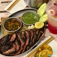 Grilled Wagyu Beef $188 Kurobuta Pork Boat Noodle $108 Siaw Dried Wagyu Beef Noodle $118 Wok-Fried Morning Glory $68 Pan-Grilled coconut rice pancake $58 Thai Milk Tea $38 Rose & Lychee Soda $38 好味指數:😋😋😋😋😋 抵食指數:💲💲💲💲💲 環境舒適:😌😌😌😌 環境衛生:🧹🧹🧹🧹🧹 服務質素:💁🏼‍♀️ 💁🏼‍♀️ 💁🏼‍♀️ 💁🏼‍♀️ 有日去尖沙咀,經過這間新開張泰國🇹🇭菜店,門口排滿人等位,看似好吸引,就試試。原來此店由泰國人主理,食物正宗。點了4款食物,1款甜品及2杯飲品。 Grilled Wagyu Beef牛肉好腍,是半生熟狀態,外層熟,而中間的肉就呈粉紅色,卻沒有一點血水。牛肉沒有筋,帶有焦香味。沾些泰式酸辣汁,好惹味。若不能吃辣,可以加青檸🍋‍🟩汁。 Kurobuta Pork Boat Noodle🍜的金邊粉不會煮得過腍,吸盡濃郁的湯汁。湯底沒有血腥味。炸豬皮好香脆,而且不帶油膱味。嗜辣者可自行加入辣椒粉、辣椒🌶️油等調味。 Siaw Dried Wagyu Beef Noodle是一種泰式拌麵,在其他泰國菜餐廳比較少吃到。味道似是船麵的味。但相比船麵,味道更濃郁,而且帶有香葉味。 Wok-Fried Morning Glory 鑊氣十足。通菜爽口。味道不會太咸。 Pan-Grilled coconut rice pancake貌似切開的雞蛋仔。有薄薄的脆皮。有3款口味,一款是只有椰汁,一款是加了鮮甜的粟米🌽粒,一款是加了微咸的蔥粒。整體都不覺膩。首嚐這款甜品,問一問侍應,原來是香港第一間泰國菜店供應此甜品! Thai Milk Tea有香濃泰國茶葉味,又不會太甜。 Rose & Lychee Soda好解渴,既有甜美果香,又有溫柔花香。 —— Siaw 📬尖沙咀赫德道8號地舖 #GrilledWagyuBeef#BoatNoodle#ThaiMilkTea#CoconutRicePancake#RoseLycheeSoda#Siaw