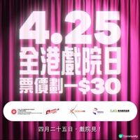 由香港戲院商會主辦,屬於「香港流行文化節2025」一部分的「全港戲院日」將於2025年5月10日(星期六)舉辦。是次活動去往年一樣,當天全港逾50間商業戲院將統一戲票價,只要$30就可以觀看當日任何時段任何時段的電影場次,吸引更多市民走進戲院,從而推廣本地電影文化,即睇下文了解更多優惠詳情!