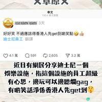 他又指,園內身穿公仔服裝跟大家拍照的工作人員,大多數都是從國外聘請的工作人員,有些只會說英語,所以提醒大家「千萬不要再怪他們了」,目前樂園仍有很多員工都會說普通話、廣東話和英語喔,部份還會其他語言!