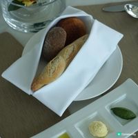 入座先送上暖暖嘅焗麵包, 配有開心果醬、牛油同埋橄欖油食, 可以邊食邊欣賞風景等上菜。