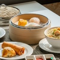 擺盤較為吸引, 阿根廷紅蝦他他彈滑爽口, 搭配獨特的黑蒜和香醇的地中海醬, 微酸開胃又提鮮。另有沾上汁醬嘅雅致竹, 健康美味。