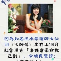 近日恒基兆業地產及恒基兆業發展的創辦人李兆基「四叔」於3月17日黃昏在家人的陪伴下安詳離世。這一則消息引起關注。因為知名風水命理師七仙羽(七師傅)早在上個月就曾預言「李姓富豪命數已到」,令網民驚訝:「師傅批中!」 最新七師傅再有2大預言‼️七師傅在3月18日接受媒體訪問時,分享她最新2大預言,特別提到名人健康現問題,當中七師傅提到香港一位名字中有「夏」字的藝人及一位政界中有「華」字的年長男士健康現問題(圖7-9)。以及香港即將發生的天災(圖10)。😱 另有網民問,七師傅預測六合彩號碼。即刻去圖看七師傅回應吧!🙏🏻 來源:七仙羽(七師傅)個人FaceBook,港生活,Canva #UCreatorHK#MOMENTSwithUCreator#預言#七師傅#2025#香港#攻略