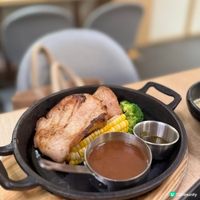 沙田新城市中心行過啲就去到另一個細啲既商場,原來呢度都好多食,今次去左呢間鐵板大師鋸扒食,覺得啲野食價錢好抵! 1⃣️泰式豬頸肉-套餐($90)(香水檸檬鴨屎茶+6) 套餐配埋意粉、餐湯、沙律同埋飲品,非常豐富,豬頸肉軟嫩,有兩大件,配上燒汁。另外湯有兩款,南瓜湯同埋蘑菇忌廉湯,南瓜湯幾香濃👍 2️⃣ 香煎牛柳-套餐($120)(柑桔檸檬鴨屎茶+$6) 牛柳揀左五成熟,粉嫩而且唔會食到啲筋。配上野菌燒汁同埋黃芥末。蘑菇忌廉湯覺得有啲金寶湯feel🫢不過overall價錢黎講幾抵食。 3️⃣ 芝士煙肉大啡菇($28) 大啡菇多汁,面頭釀滿芝士同煙肉😋 4️⃣ 日本蟹肉忌廉餅($18) 內餡多而且creamy,呢個價錢仲要有兩件,抵! 5️⃣ 香煎鳳尾蝦($28) 幾香,蝦肉爽口。 好味:6.4/10 環境:6.6/10 性價比:8.5/10 鐵板大師 📍地址:沙田橫壆街1-15號好運中心3樓3107-3108號舖 #秋日養生#清爽夏日#夏日排毒瘦身#ucreator