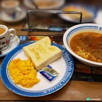 意粉屋早餐:砂煲沙嗲牛肉麵+即磨咖啡 $42😆