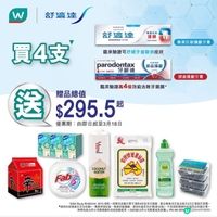 屈臣氏由即日起至6月17日,購買指定數量舒適達牙膏,送價值374元禮品,包括飲品及生活用品。