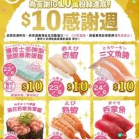 壽司郎為了答謝大家一直以來的支持,推出$10感謝週!在6月23日至6月27日期間,每日都會推出$10商品,大家記得bookmark 以下日子!