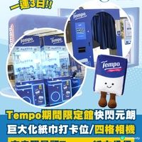 Tempo贈品|Tempo限量版公仔登場啦!Tempo推出限量版公仔Tempo Buddies,即日起消費滿港幣$238可獲得一盒限量版Tempo公仔(價值$188),包含Tempo紙巾仔及盒巾仔;消費滿港幣$408則可獲得額外一盒公仔,內容包括Tempo卷紙仔及袋紙仔。活動僅適用於指定超市網店,數量有限,送完即止。