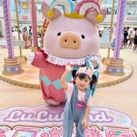 「巨型充氣LuLu豬」高達4米,手持禮物盒嘅巨型LuLu豬坐鎮車道上,畀個貼士大家,小朋友開住LuLu豬造型電動車經過時,家長就可以立即為小朋友同LuLu豬合照,堪稱最佳打卡位!