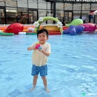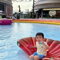 今個暑假每逢週末,充氣水池升級為注水模式,遊客可體驗水槍大戰;平日則轉為陸上「不倒翁碰碰池」,挑戰平衡與捉迷藏樂趣。二樓更特設寵物友善專區「萌寵POOL PAW-TY」,讓毛孩安全嬉水,搭配沙灘椅、衝浪板、夏日水泡等度假風佈置,輕鬆拍出萌寵夏日寫真。