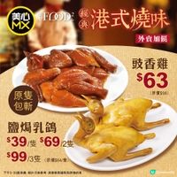 【加餸新滋味】✨鹽焗乳鴿登場! 想升級做高級大人😎,放工即刻嚟美心MX/美心Food2嗌隻「 #鹽焗乳鴿」返屋企嘆就得啦!🤤每啖都鹹香嫩滑,無論一人獨食定一家人齊齊jap都正💯,只係$39/隻、$69/2隻、$99/3隻!仲可以揀埋醃得入味嘅「 #豉香雞」🐔每隻只係$63! * 全線美心MX分店供應 (大會堂、西九龍站及大學站分店除外) 及 全線美心Food²分店供應 * 下午3:30起供應 * 只適用於外賣供應 * 不可與其他優惠同時使用 * 數量有限,售完即止 * 相片只供參考 #社群三月快閃送