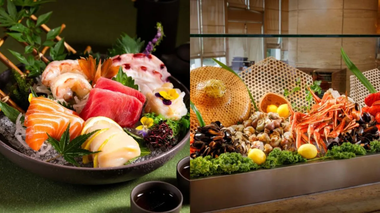 凍海鮮及刺身:刺身(阿根廷紅蝦、赤貝、三文魚)、角切雜錦刺身飯、雪花蟹腳、凍龍蝦、藍青口、熟龍蝦鉗