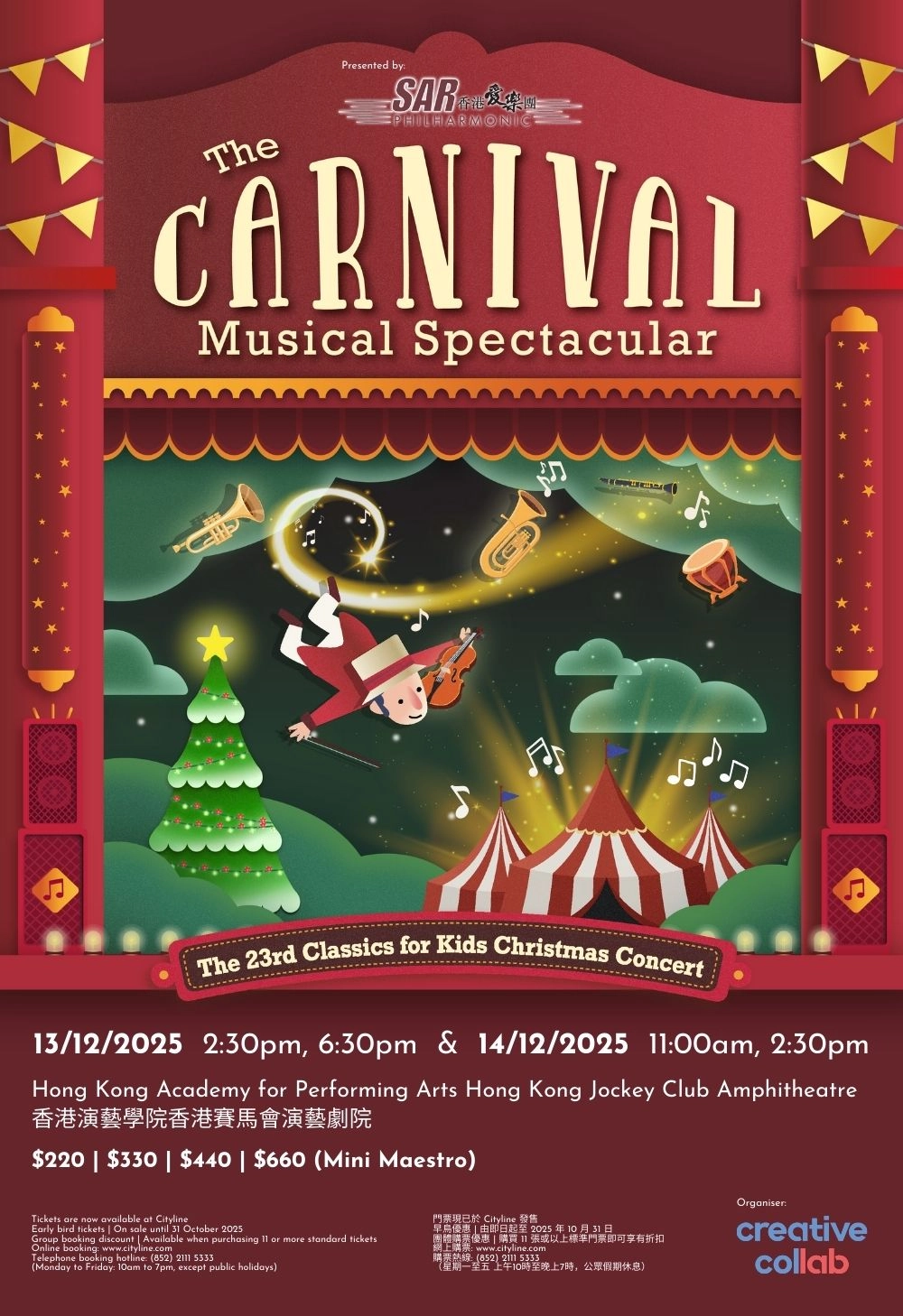 "The Carnival Musical Spectacular" 音樂劇香港|群星將於2025年12月13日在香港演藝學院 香港賽馬會演藝劇院舉辦"The Carnival Musical Spectacular" 音樂劇,U Lifestyle為大家整合"The Carnival Musical Spectacular" 音樂劇日期、場地、優先購票、公開發售日期及門票等詳情。大家務必留意,確保不會錯過"The Carnival Musical Spectacular" 音樂劇的活動詳情!