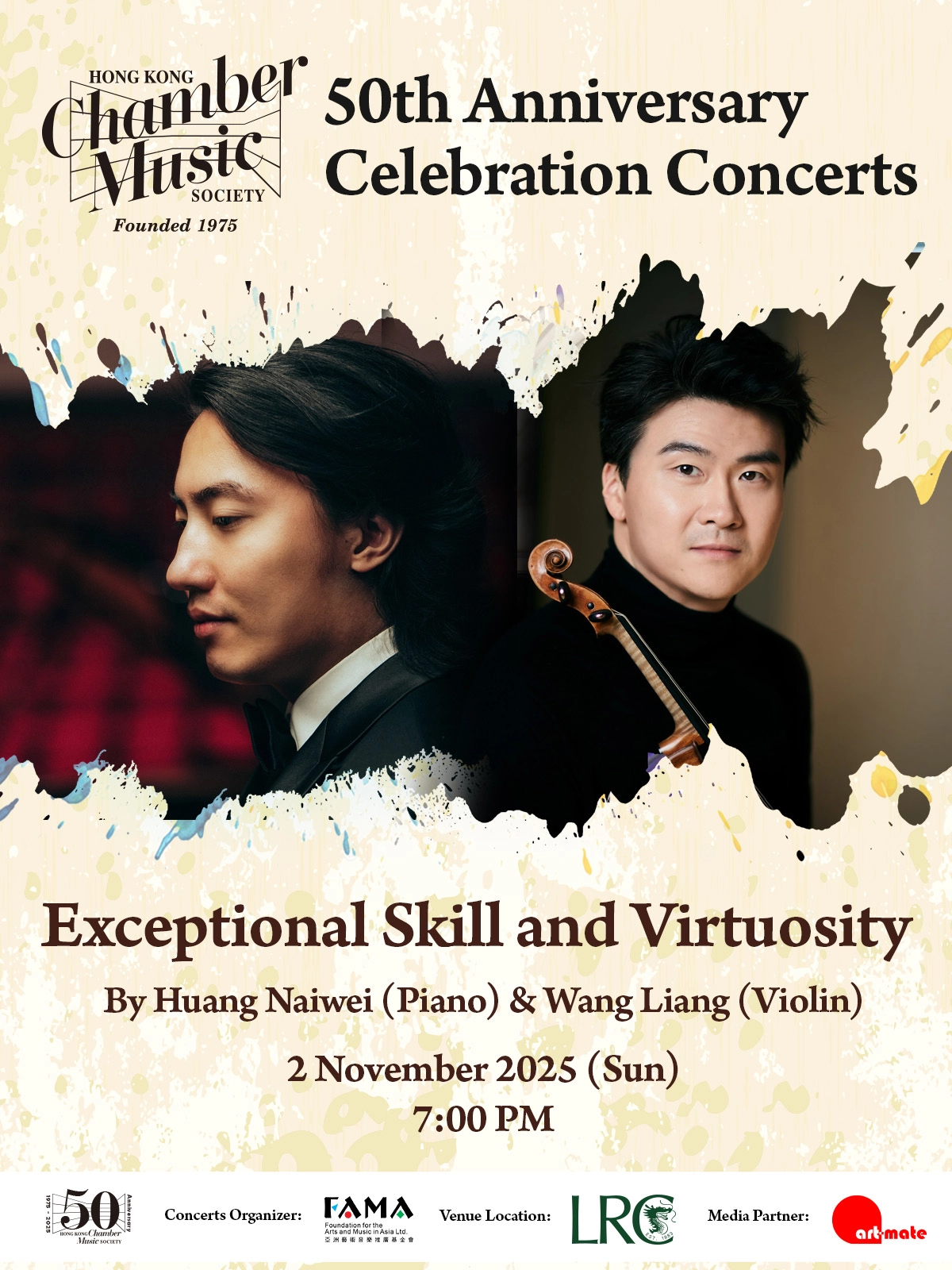 "Exceptional Skill and Virtuosity by Wang Liang and Huang Naiwei" @香港室樂協會 五十週年音樂會系列活動詳情/日期/時間/地點/票價一覽