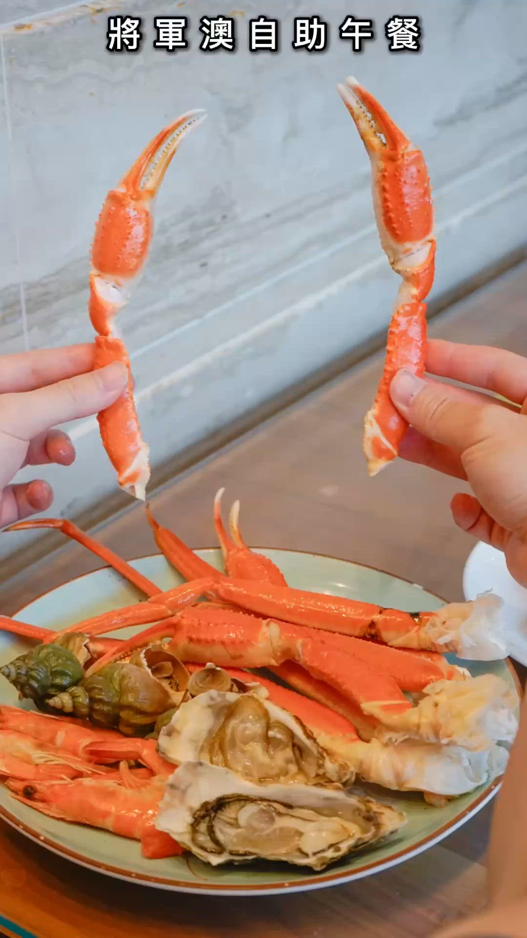 香港九龍東皇冠假日酒店推限定自助午餐連無限暢飲買一送一優惠,任食2.5小時,當中包含主食為泰式青咖喱豬頸肉、紅酒燴牛尾、去骨海南雞、泰式滷水豬手,而星期六、日及公眾假期更有限定食品:松葉蟹腳、阿根廷天使粉紅蝦刺身。
