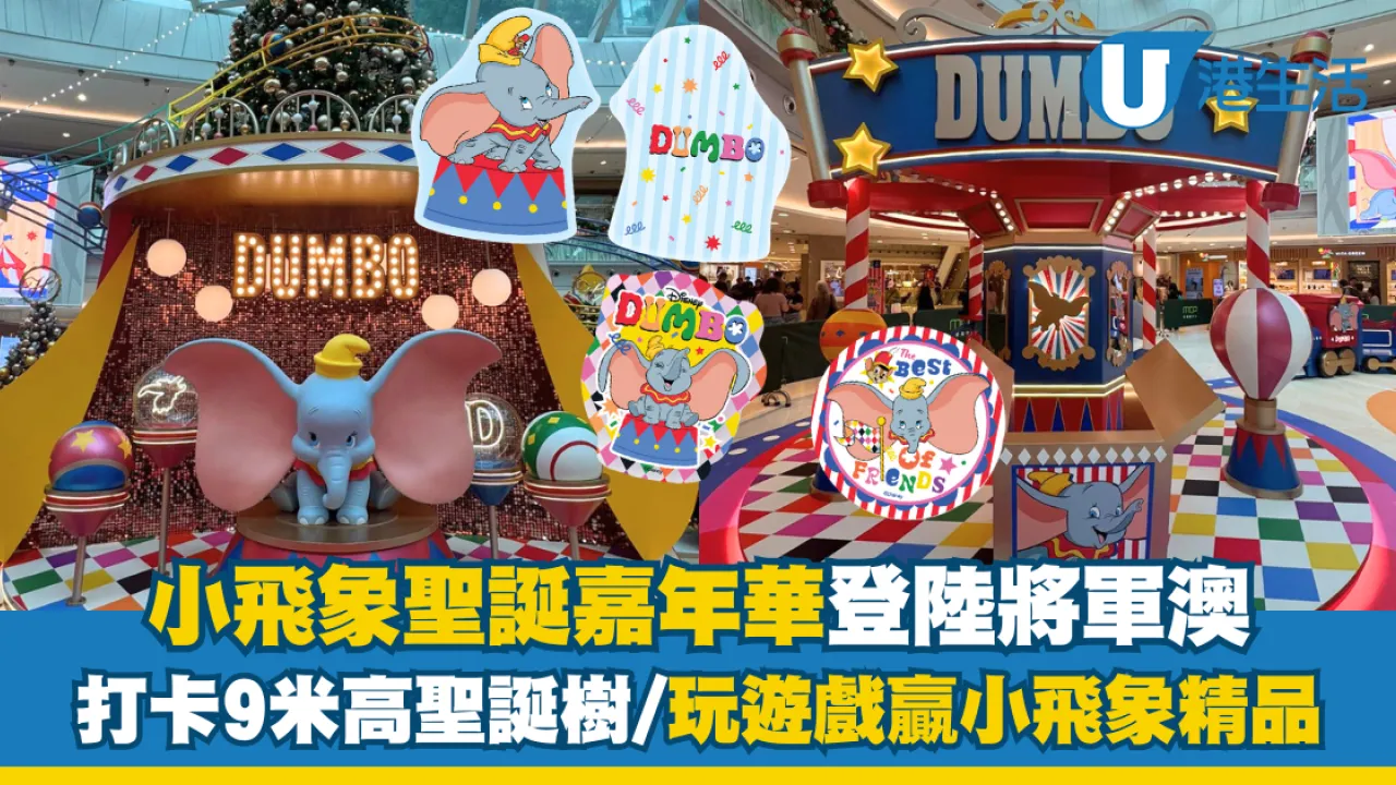 今個聖誕,與迪士尼經典動畫《小飛象》(Dumbo) 一起投入夢幻遊樂嘉年華!由 2025 年 11 月 1 日至 2026 年 1 月 1 日,將軍澳新都城中心打造出「Dumbo 聖誕飛翔狂想曲」,沉浸於小飛象的奇幻世界,感受節日的歡樂氛圍!場內分別有5大打卡位,包括4米巨型小飛象充氣裝置、9米高超巨型閃爍星光聖誕樹等。以及必玩的4大聖誕狂歡嘉年華遊戲,贏取會場限定小飛象主題禮品。即睇下文了解詳情啦!