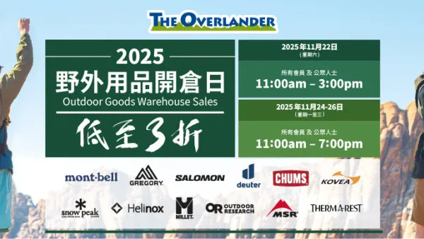 由即日起至11月26日期間,The Overlander舉行一年一度野外用品開倉優惠,大量產品低至三折發售,露營椅勁減至$420起,日本戶外品牌Snow Peak餐具勁減至半價,最平$45就買到,還有不少露營用品(營燈、鍋具、小風扇等) 都有優惠!