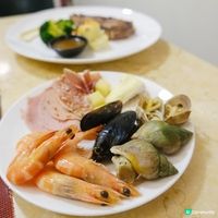 自助海鮮及沙律吧 + 是日餐湯 + 一款主菜 + 自助甜品 + 咖啡或茶(餐牌每星期轉換)