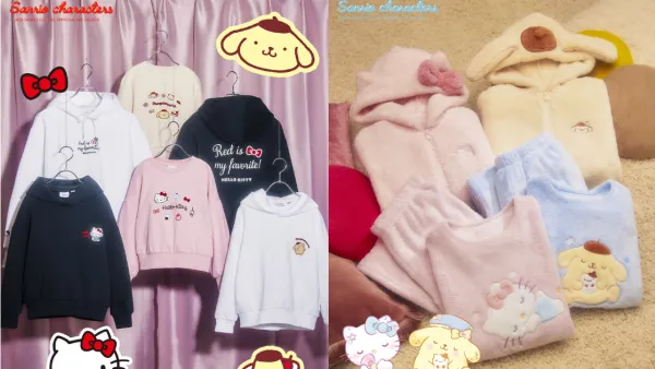 Hello Kitty、布甸狗化身經典印花打造多件復古風休閒衛衣。設計上採用了寬鬆剪裁,並印有經典的 Hello Kitty 及 Pompompurin(布甸狗)圖案,結合復古字體配色,分別有女裝連帽衛衣及童裝衛衣等。喜歡Hello Kitty及布甸狗的粉絲不可以錯過啊!