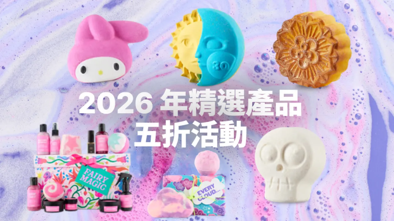 英國天然新鮮護理品牌 Lush 再次推出令粉絲瘋狂的「2026年精選產品 5 折優惠活動」!由即日起至 2026 年 1 月 31 日或售完即止,Lush 香港分店、網店及手機App同步推出精選產品半價,涵蓋逾400多款皇牌產品、浸浴產品以及限定禮盒等。即睇有咩必買清單!