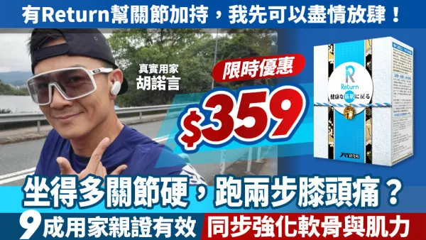 久坐上班族:「每日對住部電腦8-10個鐘,收工嗰陣成個人硬過塊板。最慘係朝早起身,肩頸同腰背好似唔屬於自己。試過按摩、拉筋,都只係舒緩一陣。開始食Return之後,最神奇係啲僵硬感大大減少。同埋就算OT到夜晚,膊頭同腰嘅酸痛感明顯輕鬆咗,個人靈活返,連集中力都好啲。終於唔使每日同自己啲關節搏鬥。」