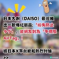 【DAISO AirTag】日本DAISO一款好物意外成為全港瘋搶對象!早前Threads上熱傳一款被譽為「平民版 AirTag」的智能產品,售價僅約$55港幣,卻能完美支援Apple的「尋找 (Find My)」功能。由於性價比極高,不少網民哀鳴指連跑多間12蚊店都空手而回,大嘆「去到邊都搵唔到貨」。究竟這款斷貨王實際功能如何?即睇網民實測細節,各位「大頭蝦」朋友出發旅行前務必認住包裝去入貨喇!