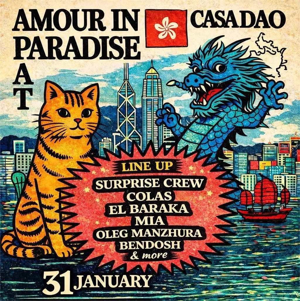 「AMOUR IN PARADISE」演唱會將於1月31日在Casa Dao舉行,活動將從午夜持續至中午。這場活動被描述為一段充滿愛、混亂、律動和熱帶能量的旅程,並將有貓、龍、天際線和音響系統等元素。演出的陣容包括SURPRISE CREW、COLAS、EL BARAKA、MIA、OLEG MANZHURA、BENDOSH等。參與者被鼓勵跳舞直至時間消失,盡情放縱,並體驗「天堂般的愛」。這場活動被預期為一場精彩的冒險。
