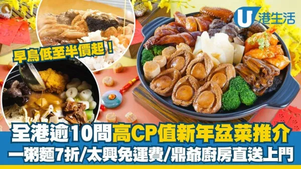 部分新年盆菜提供早鳥優惠,例如九龍香格里拉酒店在1月23日前預訂可享85折,緻素坊在1月31日前預訂最高可減$200。