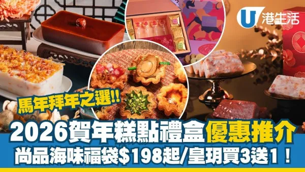 賀年糕點2026︱馬年就快到,到親戚屋企拜年時,點少得準備得體的新年禮盒呢!本文為大家精選逾20款新年禮盒,包括尚品海味禮盒、香格里拉星級糕點,以及半島嘉麟樓等送禮之選。部分賀年糕點或新年禮盒更有早鳥優惠,低至7折或買6送1,最平$100就可以入手,即睇有邊款賀年禮盒啱你心啦!