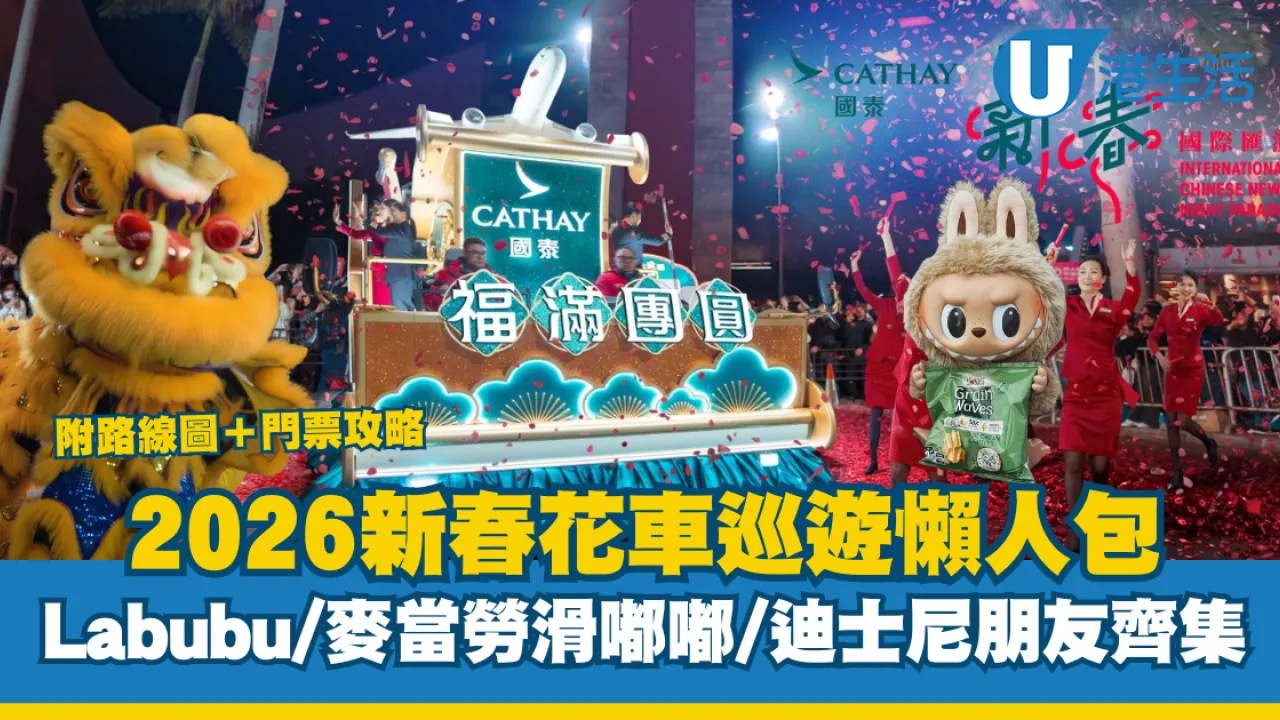 花車巡遊2026|踏入2026馬年,大年初一當然要「一馬當先」去行大運!全城期待的年度盛事——「國泰新春國際匯演之夜」將於2月17日重磅回歸尖沙咀。今年陣容可謂歷年最强,除了有迪士尼、國泰等經典花車,更有人氣爆燈的Labubu、麥當勞滑嘟嘟首次加盟!以下為大家整理花車巡遊懶人包,即睇下今年有咩新搞作!